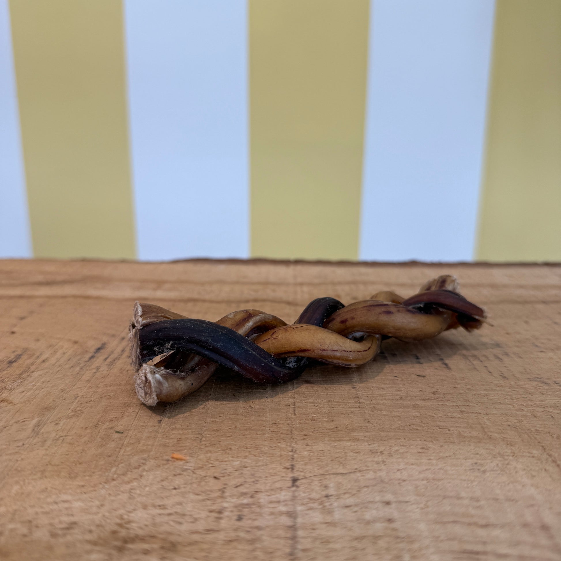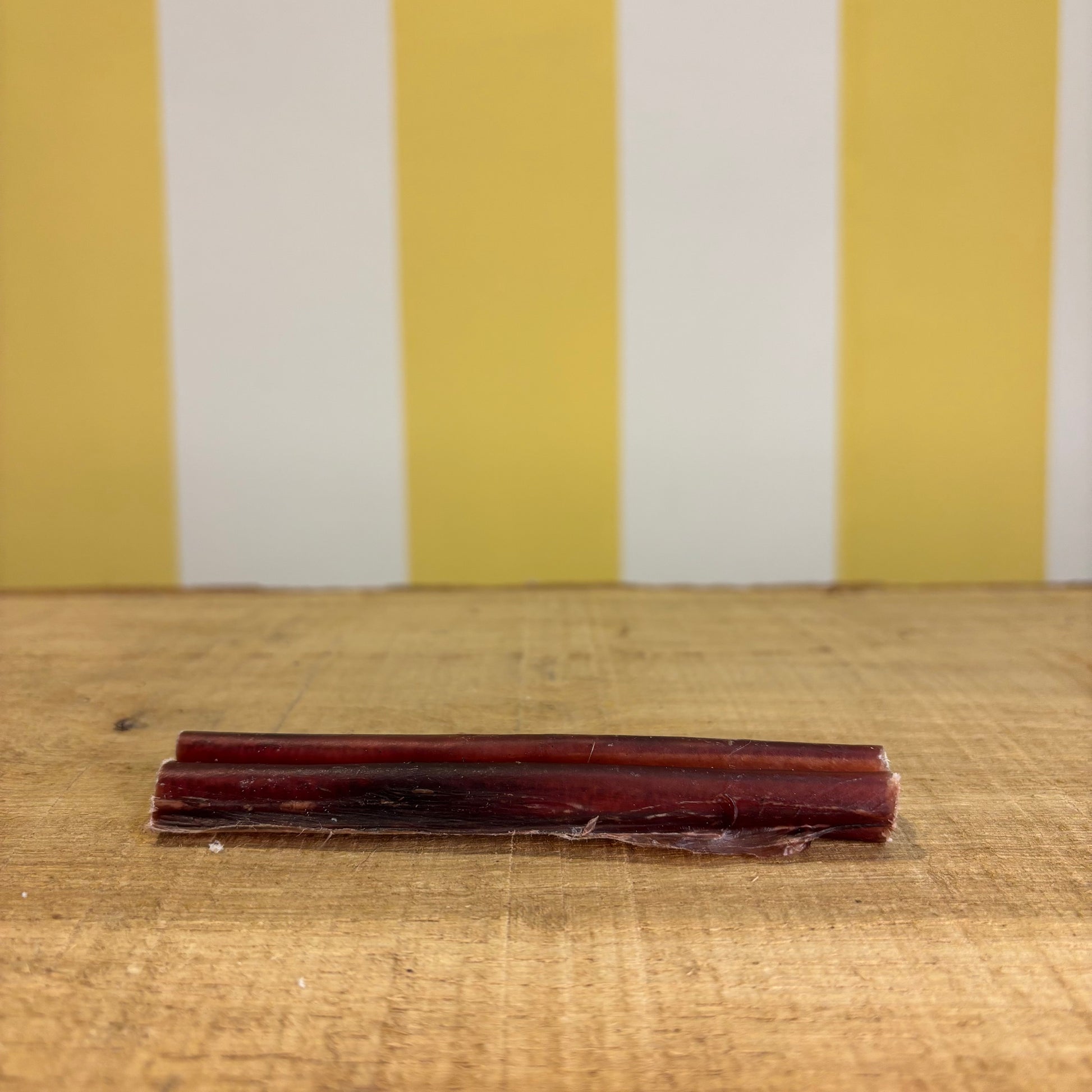 Our Standard Bulls Pizzle, also known as bully sticks, are made from 100% natural beef pizzle. Simply air-dried with no additives, no preservatives—just pure goodness! High in protein and low in fat, these pizzles feature a firm and fibrous texture, providing a longer-lasting and satisfying chew that’s perfect for cleaning your dog's teeth and gums.