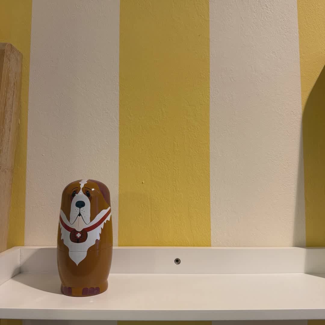 Our Dog Russian Nesting Dolls feature a charming line-up of hand-painted pups — from a noble Saint Bernard to a tiny Pug. Each wooden doll opens to reveal another inside, celebrating the joy of dogs in a playful, nostalgic form.