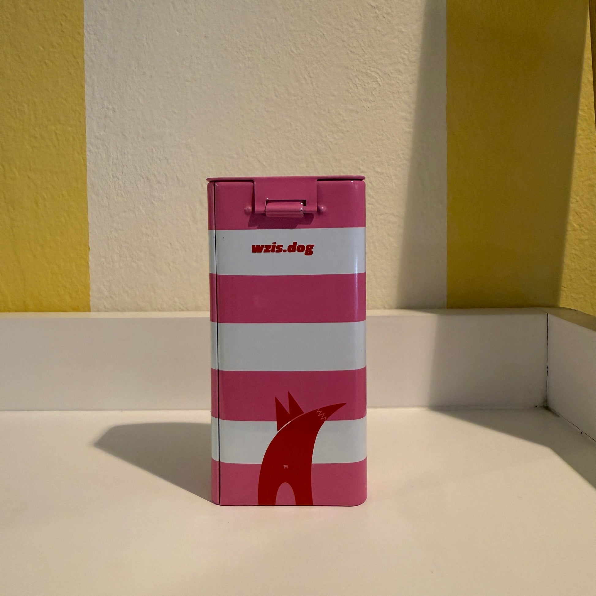 Metal Training Treat Tin by W'zis Dog Treats. Flip top, fits perfectly into your pocket and holds around 30g of W'zis treats.